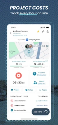 The ConstructionClock app captures where each crew member clocks in and out only for time-tracking requirements. We do not store any user data when employees are not on a job site to ensure maximum battery life, minimal data usage, and most importantly, privacy.