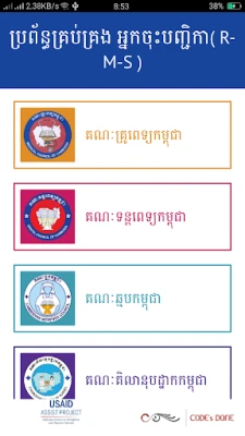 The Registration Management System (RMS) is designed for the five health profession Councils of Cambodia (Medicine, Dental, Midwives, Nurses and Pharmacy) to allow online application and payment process by applicants for registration as a health professional and a license to practice as a health practitioner. The RMS provides a data base or register for each Council that records all registered health professionals and all health practitioners that hold a current license to practice. Specific information from the RMS will be made available to the public so that they can readily search on-line at any time and identify whether the person providing their health care is a registered and licensed health practitioner with the relevant Council.