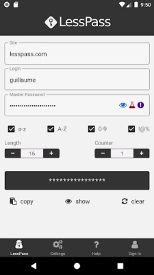 LessPass derives a site, a login and a master password to generate a unique password. You don't need to sync your password vault across every device.